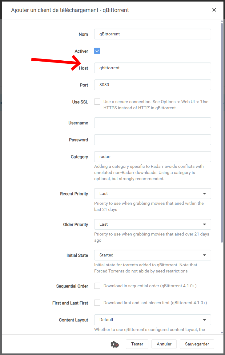 - Entrez “qbittorrent” dans le champ “Host”