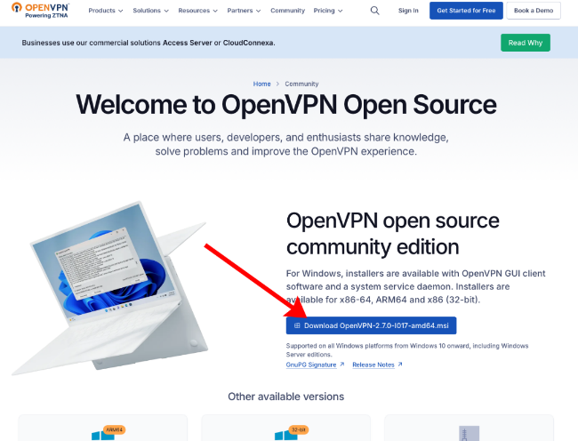Téléchargez et installez la version de OpenVPN correspondant à votre version de Windows : https://openvpn.net/index.php/open-source/downloads.html